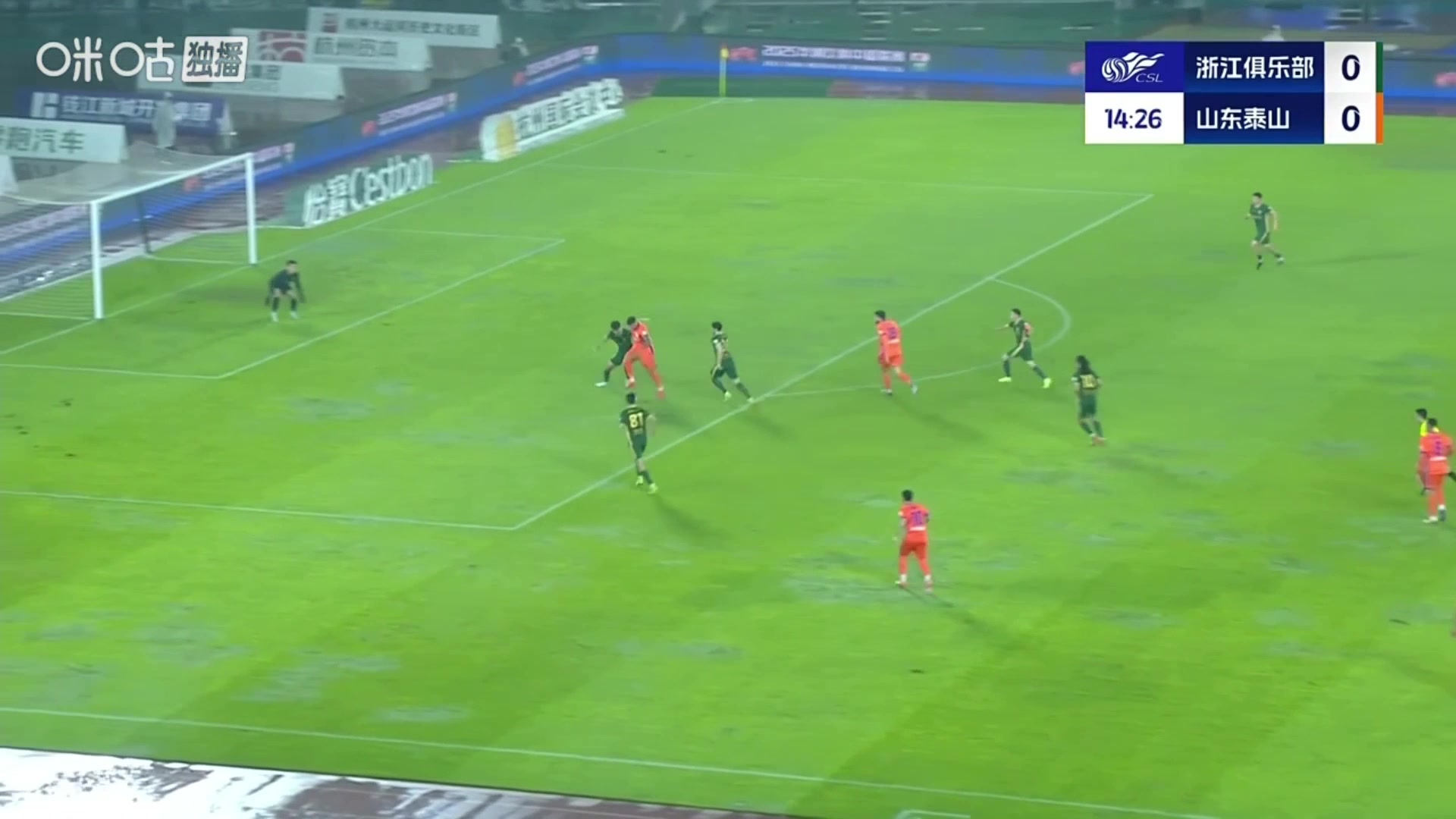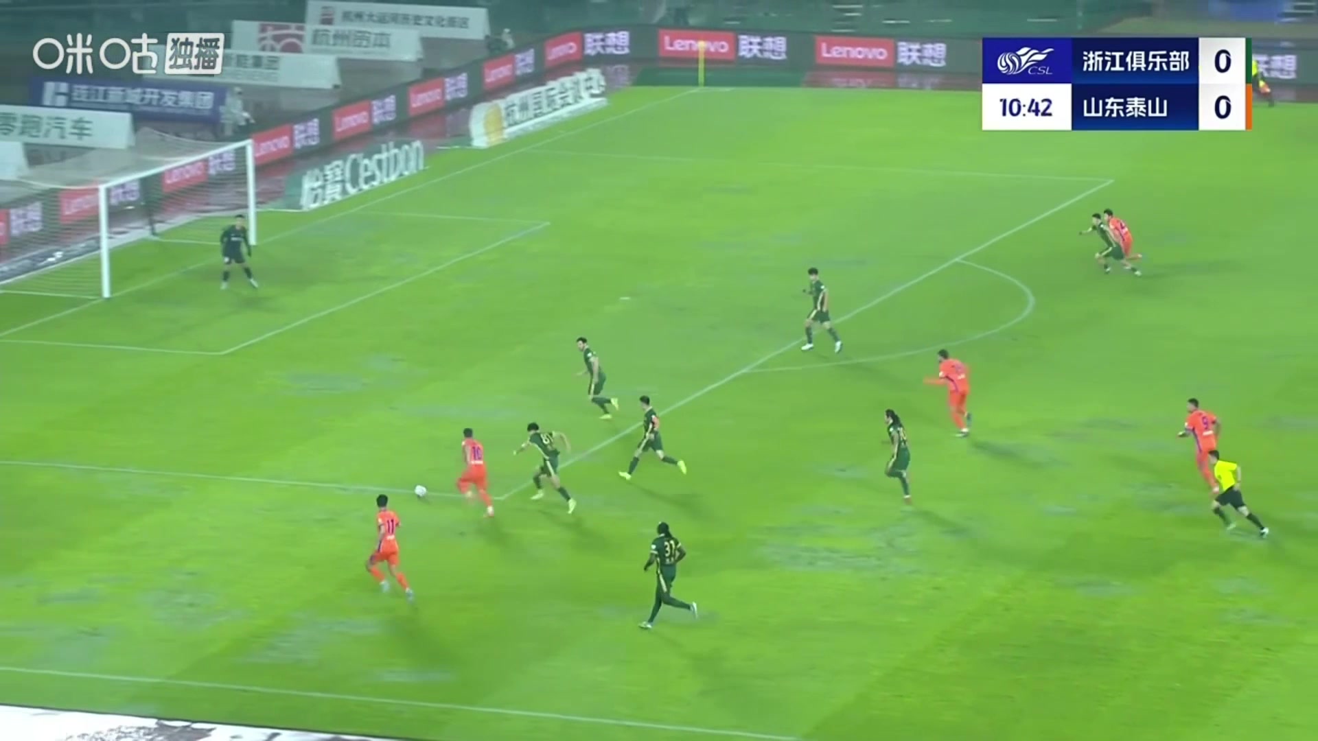 泰山先拔头筹黄政宇禁区外远射破门随后一路滑跪怒吼